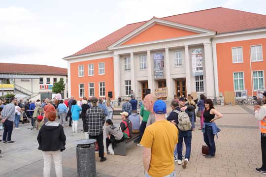 Nach einer kurzen Pause setzte sich der Demonstrationszug auf der Berliner Straße fort, bog dann in die Schleusenstraße ein und verlief geradeaus. Danach ging es rechts in die Bergstraße, bis die Fußgängerbrücke am Alten Hafen erreicht war. Hier bog der Zug erneut rechts ab und stoppte am Schleusenplatz. Am Schleusenplatz wurden die finalen Redebeiträge von Paulina von der Linksjugend Rathenow, Robin Oltmanns, Viduni Anisha Moraliyadde Gedara, Steve Lehmann und Dennis Driebusch gehalten.