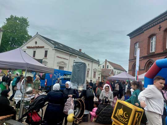 Anfangs hatten wir ja ein bisschen Bammel, ob das bei den Rathenowerinnen und Rathenowern gut ankommt. Aber es war ein schönes Fest, es gab viele Gespräche und nun gibt es ein bisschen weniger Berührungsangst mit Menschen mit islamischer Religion.