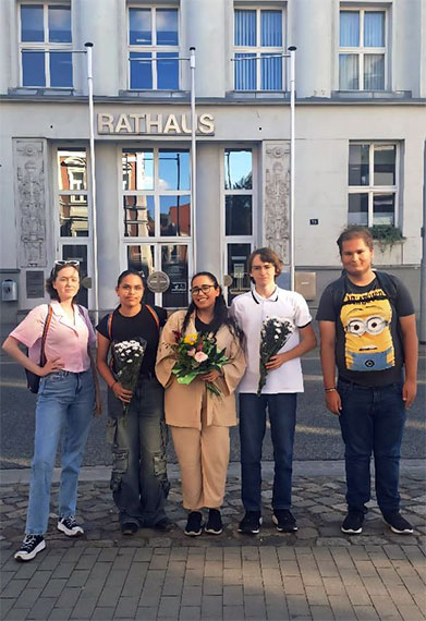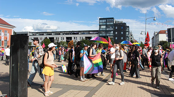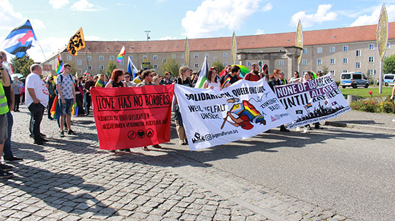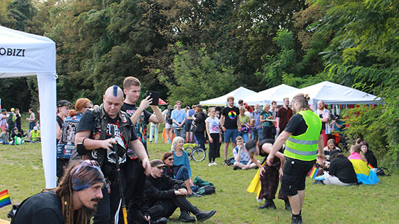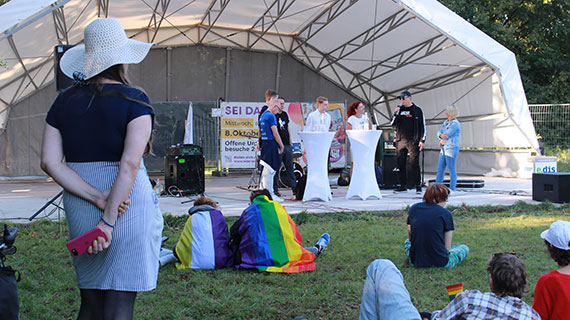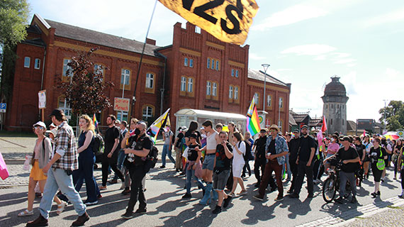 Auf dem Rideplatz fand die feierliche Abschlusskundgebung statt, die mit musikalischer Unterhaltung der Punk-Band „4 Fucking Problems“ und des regionalen Rappers „Flowes“ für Stimmung sorgte. Die Band begeisterte mit energiegeladenen Songs, während Flow mit seinen Texten lokale Bezüge und queere Themen aufgriff. Ein politisches Gespräch mit Politiker:innen und Aktivist:innen, moderiert durch Diana Golze, vertiefte die Diskussion über queere Rechte, Sichtbarkeit und die Herausforderungen in der Region. Zu dem bunten Bühnenprogramm gab es nebenbei ein „Awareness-Team“, das für Sicherheit und Respekt sorgte, sowie Erfrischungsmöglichkeiten. Die gesamte Veranstaltung wurde von der Polizei aufmerksam, umsichtig und stets in enger Abstimmung mit der Versammlungsleitung begleitet. Durch die Anzahl der lokalen Sicherheitskräfte und die enge Zusammenarbeit konnte ein reibungsloser Ablauf gewährleistet werden. Das Kinder- und Jugendparlament bedankt sich sehr herzlich bei der Polizei für ihren Einsatz.