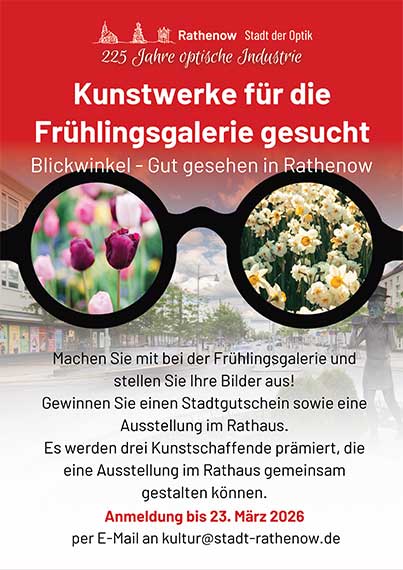 Anmeldung bis zum 23.März unter kultur@stadt-rathenow.de oder Tel. 03385 596 415