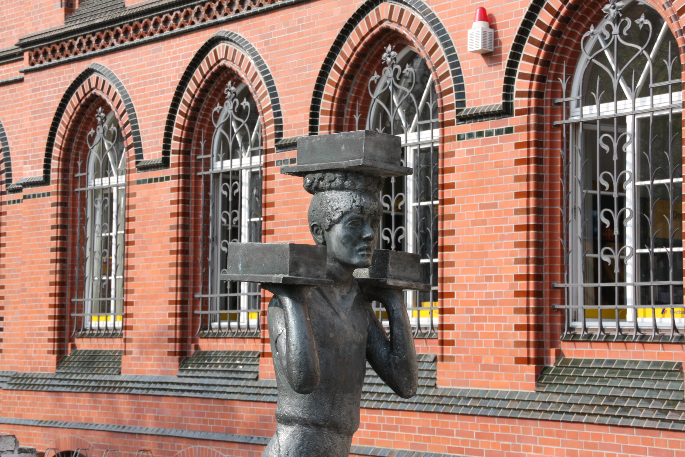 1984 stellte die Stadt Rathenow an der gleichen Stelle die Bronzefigur „Abtragejunge“ vom Rathenower Bildhauer Karl Mertens (1903-1988) auf dem Platz auf. Das Denkmal soll an die körperlich schwere Arbeit in den vielen Rathenower Ziegeleien erinnern, die oftmals von Kindern verrichtet wurde. Karl Mertens wurde 1987 zum Ehrenbürger der Stadt Rathenow ernannt. Mertens ist an der Seite seiner Frau auf dem Weinbergfriedhof in Rathenow bestattet. 2012 wurde der Platz im Zuge der Innenstadtsanierung in Vorbereitung auf die Bundesgartenschau 2015 komplett saniert, eine Kreisverkehrsinsel gebaut und das Denkmal auf die Insel versetzt.