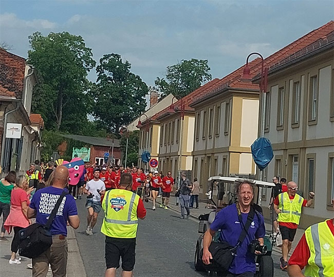 Ein Höhepunkt des Host Town Programms stellt für alle Teilnehmerinnen und Teilnehmer der heutige Fackellauf dar, der Law Enforcement Torch Run® (LETR) Final Leg. Um 9.00 Uhr startet der Lauf im Stadion Schwedendamm. Die Route verläuft weiter über die Weinbergbrücke in Richtung Bismarckturm, um den Bismarckturm herum und zurück geht es auf dem Havelweg bis zur Grundschule Am Weinberg. Dort findet im Anschluss ein Inklusives Schulhoffest mit Mitmach-Aktionen für jedermann statt. Die Veranstalter hoffen auf zahlreiche Zuschauer am Rande der Strecke, die die internationalen, nationalen und lokalen Läufer anfeuern.