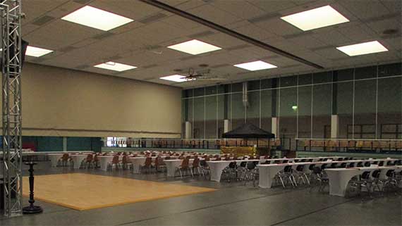 Am Wochenende werden hier verschiedene Turniere, Wettkämpfe, Heimspiele und Meisterschaften ausgetragen, da durch eine ausziehbare Tribüne ausreichend Zuschauermöglichkeiten vorhanden sind. Zur Halle gehört auch ein 65 m² großer Übungsraum.