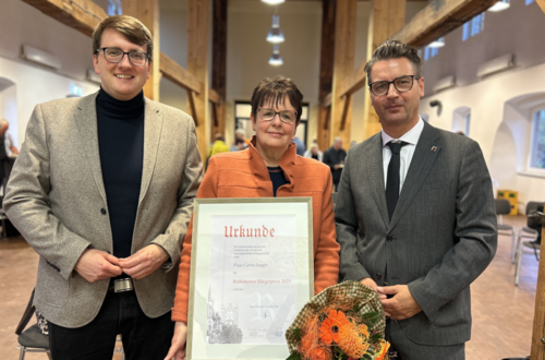Ein besonderer Höhepunkt des Abends war die Verleihung des Bürgerpreises 2025. Der Vorsitzende der Stadtverordnetenversammlung, Corrado Gursch, würdigte Catrin Seeger für ihr jahrzehntelanges Engagement im Einsatz für Frauen und Kinder, die von Gewalt betroffen sind. Als Gründerin und Leiterin des Frauenhauses in Rathenow hat sie über drei Jahrzehnte hinweg unzähligen Menschen Schutz und neue Hoffnung gegeben. Neben ihrer täglichen Arbeit setzt sie sich im Unabhängigen Frauenverein und im Netzwerk brandenburgischer Frauenhäuser für bessere Bedingungen ein und bringt durch Aktionen wie One Billion Rising das Thema öffentlich in Bewegung. Für ihr Wirken wurde sie in diesem Jahr bereits mit dem Verdienstorden des Landes Brandenburg ausgezeichnet. Mit der Verleihung des Bürgerpreises würdigt die Stadt Rathenow ihre außergewöhnliche Lebensleistung und ihren unermüdlichen Einsatz für Menschlichkeit und Gleichberechtigung.