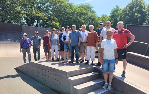 Die Tour begann um 9.30 Uhr auf dem Hof des Rathauses. Von dort aus ging es zunächst zur Baustelle des neuen Rathausquartiers, wo in den kommenden Jahren Wohnungen, Gewerbeflächen und ein großer Supermarkt entstehen sollen.