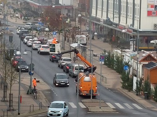 Gleichzeitig wurde die Weihnachtsstraßenbeleuchtung über der Berliner Straße installiert. Die Beleuchtung ist in diesem Jahr jedoch nur im engsten Innenstadtbereich, vom Straßenkreisel Berliner Straße/ Goethestraße bis zum Straßenkreisel Berliner Straße/Brandenburger Straße.