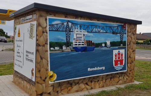 Jörg Zietemann freut sich über das neue Erscheinungsbild dieser Trafostation: „Es heißt, Graffitis machen graue Wände lebendig. Wenn es sich um ein echtes Kunstwerk wie an diesem Trafohäuschen handelt, ist die bekannte Liedzeile auf jeden Fall wahr.“ Die Stadt Rathenow brachte die Idee ein, die Gestaltung den Partnerstädten zu widmen. Zu sehen sind Motive aus Rendsburg in Schleswig-Holstein und Złotów in Polen auf Postkarten, welche an eine Pinnwand geheftet wurden. Die Gestaltung wurde durch die E.DIS Netz GmbH beauftragt und von der Firma ART-EFX verwirklicht. „Die Umsetzung des Motivs ist mehr als gelungen. Viele Menschen werden diesen Gruß an unsere Partnerstädte dank der gut besuchten Lage an der Milower Landstraße sehen“, so Zietemann.