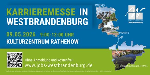 Unter dem Motto „Fachkräfte gewinnen, Pendler zurückholen, Zukunft sichern“ findet am 9. Mai 2026 in der Zeit von 9.00 bis 13.00 Uhr die Karrieremesse Westbrandenburg im Kulturzentrum Rathenow und auf dem Märkischen Platz statt.