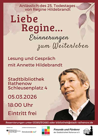 Der Eintritt ist frei, Reservierungen werden gern unter der 03385/512683 oder bibliothek@stadt-rathenow.de entgegengenommen.