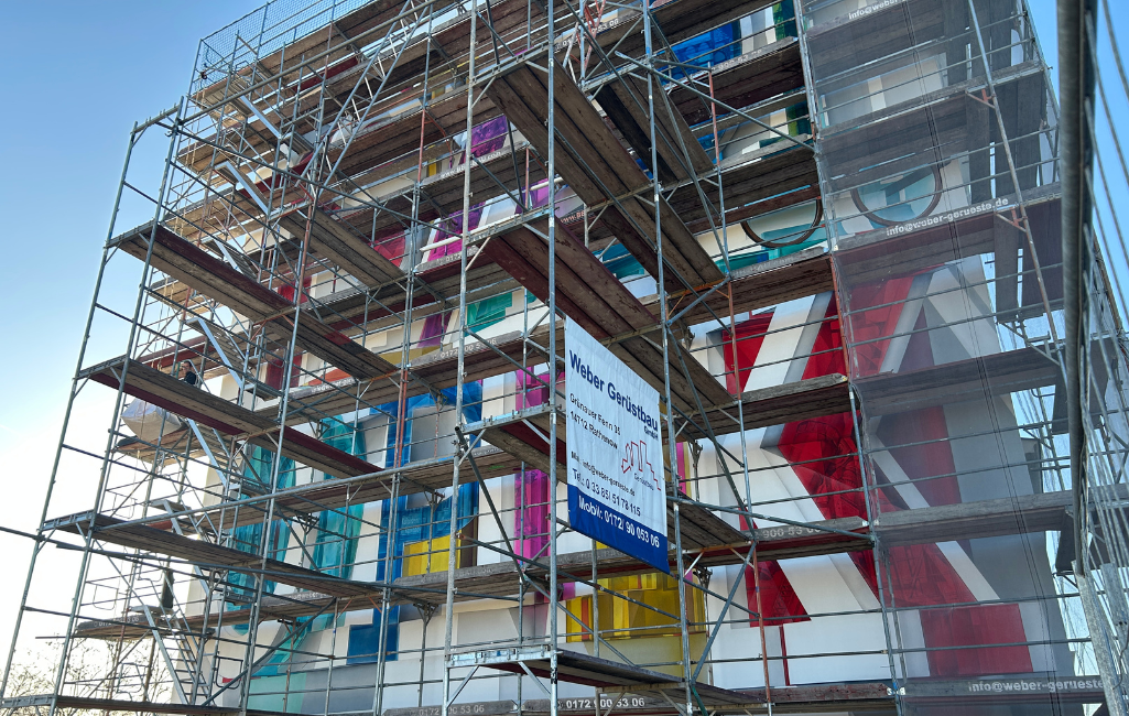 Nach dem Abriss der ehemaligen Firmengebäude wurde der freistehende Giebel des Rathenower Rathauses an der Berliner Straße 15 künstlerisch gestaltet. Das großformatige Wandgemälde hat bereits sichtbar Form angenommen und setzt nun einen neuen gestalterischen Akzent im Stadtbild.