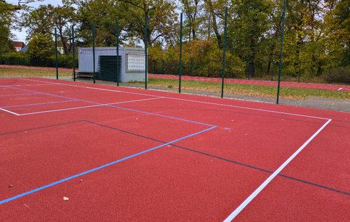 Im Mittelpunkt der Arbeiten stand die Erneuerung der Laufbahn und des Multifunktionsspielfeldes. Dabei wurden Wurzelschäden beseitigt, eine Wurzelsperre eingebaut und der Untergrund erneuert. Die Fläche erhielt anschließend einen neuen Kunststoffbelag, der für verschiedene Sportarten markiert wurde. Sowohl Laufdisziplinen als auch Fußball, Basketball, Volleyball und Zweifelderball können nun wieder auf optimalen Flächen trainiert und gespielt werden.