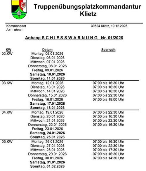 Quelle: Truppenübungsplatzkommandantur Klietz