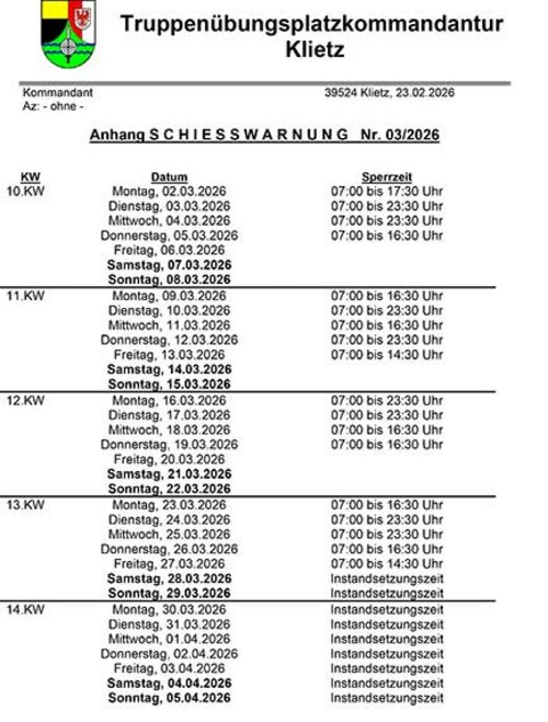 Quelle: Truppenübungsplatzkommandantur Klietz