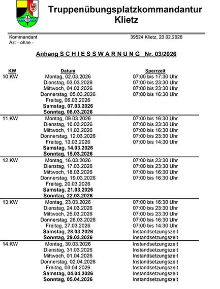 Quelle: Truppenübungsplatzkommandantur Klietz