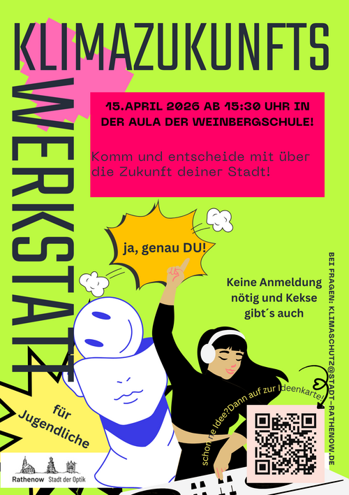 Die Stadt Rathenow lädt zu zwei Beteiligungsveranstaltungen im Rahmen der Erarbeitung des neuen Klimaschutzkonzeptes ein. Am 15. April 2026 sind insbesondere Jugendliche eingeladen, ihre Perspektiven und Zukunftsideen einzubringen. Die Veranstaltung beginnt um 15:30 Uhr in der Aula der Weinbergschule, Schulplatz 3 in Rathenow. Eine Anmeldung ist nicht erforderlich. Am 16. April 2026 folgt um 17:30 Uhr eine weitere Veranstaltung für alle Bürgerinnen und Bürger, ebenfalls in der Aula am Weinberg. Dort werden Ideen zu verschiedenen Handlungsfeldern gemeinsam diskutiert und weiterentwickelt. Grundlage bilden unter anderem bereits vorliegende Ergebnisse aus Analysen, Befragungen sowie die Beiträge der Jugendlichen.