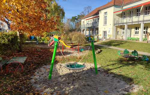 Für die Kita „Die kleinen Philosophen“ im Philosophenweg wurde die Erweiterung des Spielplatzes umgesetzt. Innerhalb des dafür vorgesehenen Budgets von 9.000 Euro kamen ein Wackelbogen sowie eine Mini-Vogelnestschaukel zum Einsatz, die durch den Förderverein beschafft und vom Betriebshof installiert wurden. Die Gesamtkosten betrugen rund 8.500 Euro. Damit profitieren die Kinder nun von zusätzlichen Bewegungs- und Spielmöglichkeiten.