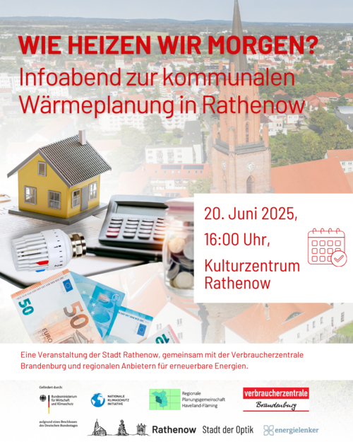 Die Stadt Rathenow lädt alle Bürgerinnen und Bürger herzlich zu einem Infoabend zur Kommunalen Wärmeplanung ein. Die Veranstaltung findet am Freitag, den 20. Juni 2025, ab 16.00 Uhr im Kulturzentrum Rathenow (Blauer Salon & Foyer) statt.